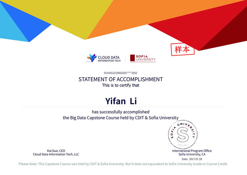 通過(guò)云和數(shù)據(jù)各專(zhuān)業(yè)課程學(xué)習(xí)和各階段項(xiàng)目評(píng)審的同學(xué),不僅可以獲得云和數(shù)據(jù)的認(rèn)證證書(shū),還可以獲得云和數(shù)據(jù)與美國(guó)知名大學(xué)聯(lián)合結(jié)業(yè)證書(shū),增加求職競(jìng)爭(zhēng)力。